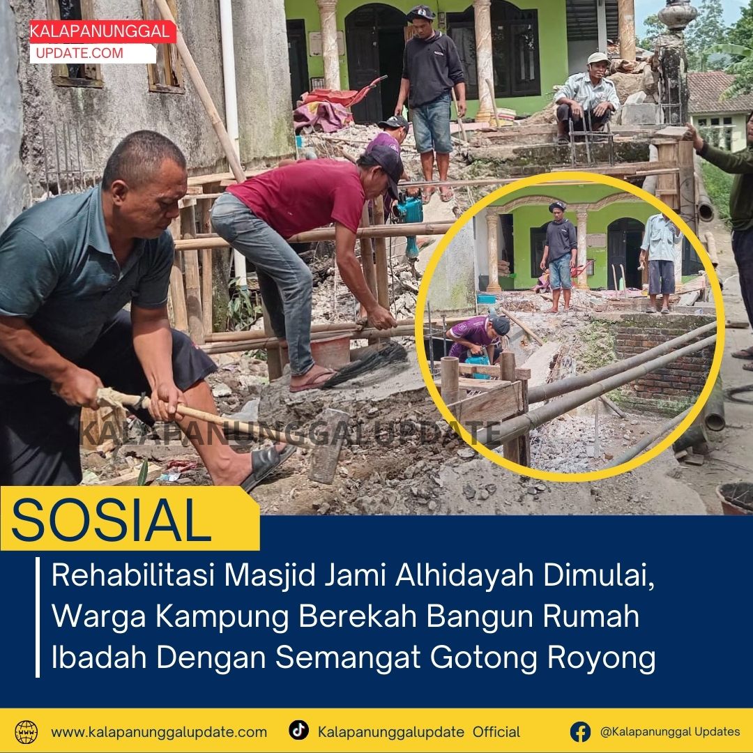 KALAPANUNGGALUPDATE.COM, KAMPUNG BEREKAH. BOJONGGENTENG. — ( 27/1/2026 ). Suasana penuh semangat dan kebersamaan mewarnai dimulainya kegiatan rehabilitasi Masjid Jami Alhidayah di Kampung Berekah, RT 007/002, pada hari ini. Program perbaikan rumah ibadah tersebut menjadi wujud nyata kepedulian masyarakat dalam menjaga dan meningkatkan kualitas sarana ibadah di lingkungan mereka.