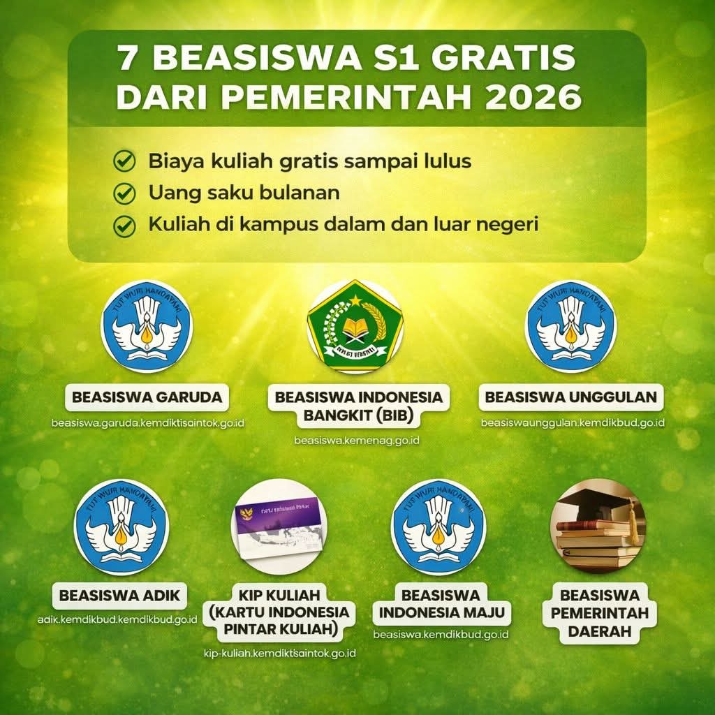 - Berikut 7 Program Beasiswa S1 Gratis dari Pemerintah Tahun 2026 yang dapat diakses calon mahasiswa: