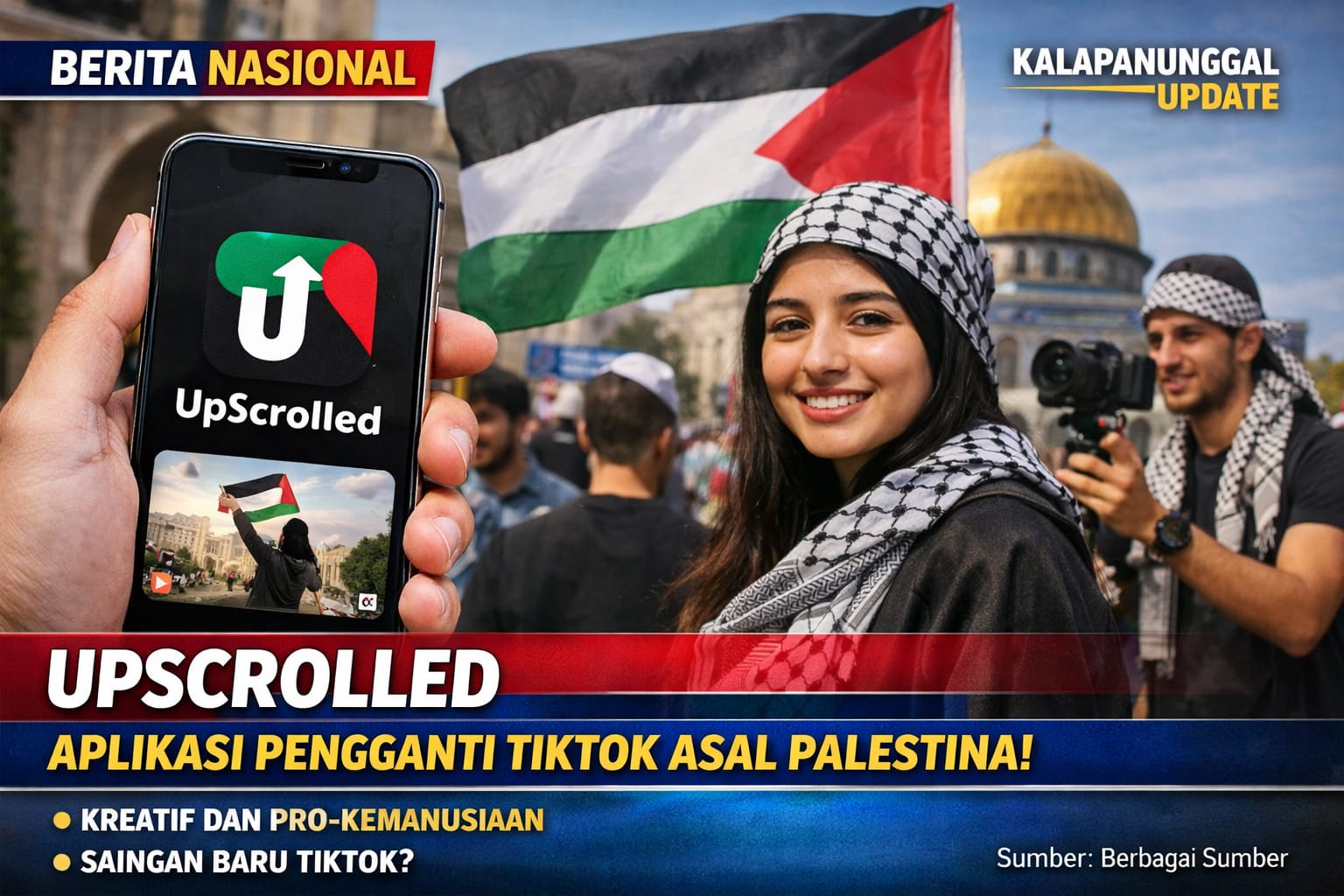 KALAPANUNGGALUPDATE.COM, Kalapanunggal. — ( 30/1/2026 ). Di tengah meningkatnya kesadaran global terhadap etika digital dan keberpihakan kemanusiaan, sebuah aplikasi media sosial bernama UpScrolled mulai menarik perhatian publik internasional. Aplikasi ini disebut-sebut sebagai alternatif pengganti TikTok yang dikembangkan oleh kreator dan pengembang asal Palestina.