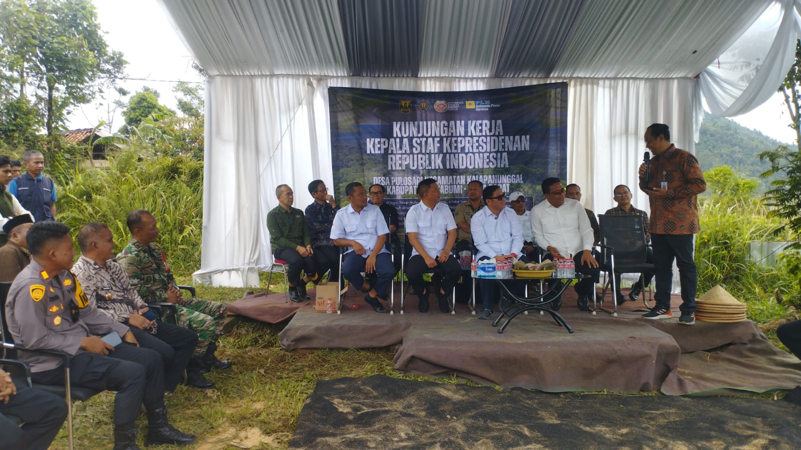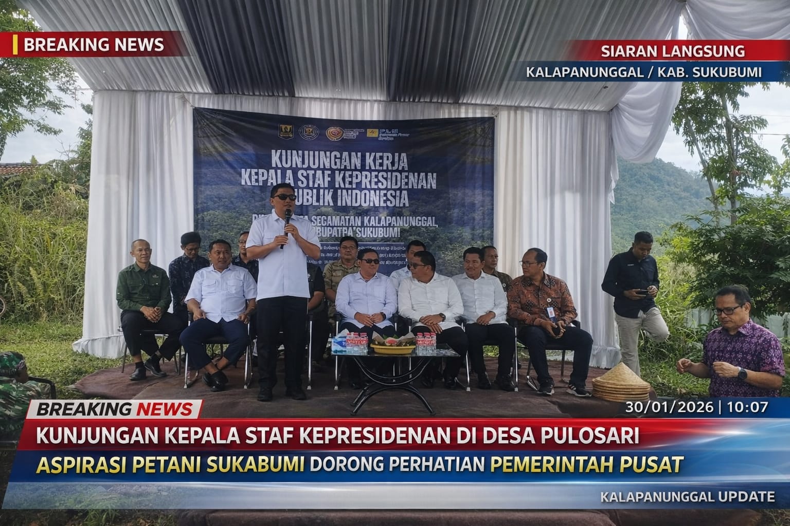 KALAPANUNGGALUPDATE.COM, Desa Pulosari, Kecamatan Kalapanunggal, Kabupaten Sukabumi. — ( 30/1/2026 ). Kepala Staf Kepresidenan Republik Indonesia melaksanakan kunjungan kerja ke Desa Pulosari, Kecamatan Kalapanunggal, Kabupaten Sukabumi, pada Jum’at, 30 Januari 2026. Kunjungan ini bertujuan menyerap aspirasi masyarakat secara langsung sekaligus meninjau kondisi pembangunan di wilayah pedesaan.