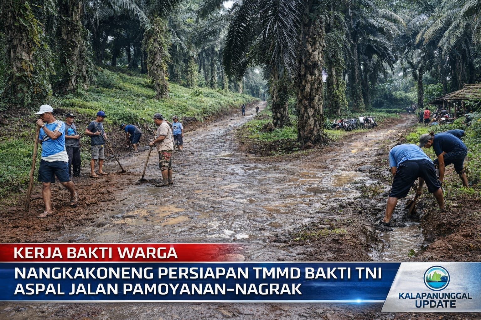 Di lapangan, warga terlihat membersihkan lumpur, merapikan bahu jalan, serta membuka saluran air yang tersumbat. Kondisi jalan yang berada di area perkebunan memang kerap licin dan rawan saat hujan, sehingga pembersihan ini dinilai sangat mendesak.