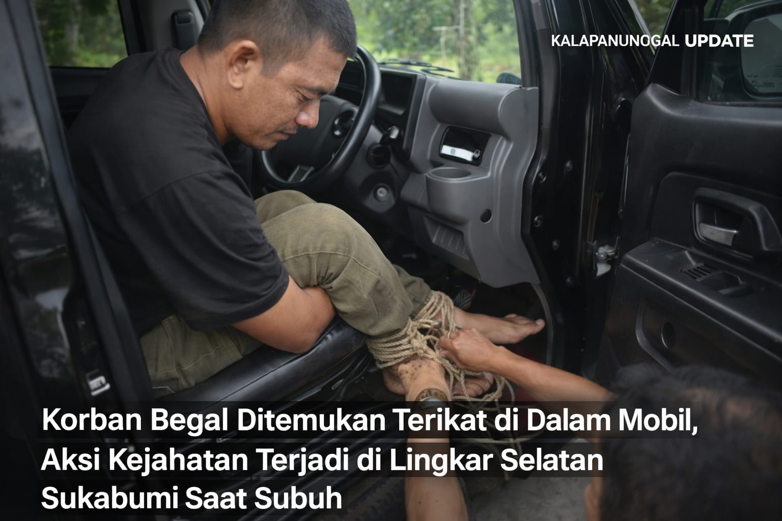 Korban ditemukan dalam kondisi memprihatinkan di dalam mobil, dengan kedua kaki dan kedua tangan terikat menggunakan tali menyerupai tambang, sebagaimana terlihat dalam rekaman video yang beredar luas di media sosial. Dalam video tersebut, tampak korban masih berada di kursi mobil, sementara beberapa orang berusaha melepaskan ikatan yang melilit tubuhnya.
