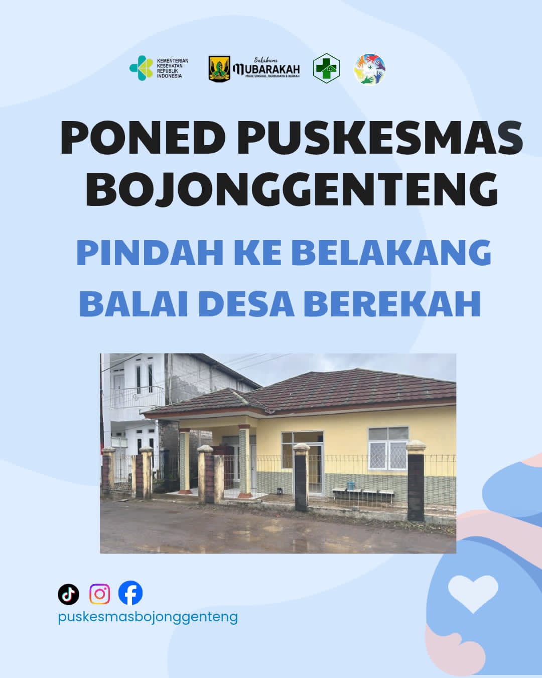 Pemindahan pelayanan ini telah diinformasikan secara resmi kepada Camat Bojonggenteng, Sekretaris Camat, serta seluruh pemangku kepentingan terkait, sebagai bagian dari koordinasi lintas sektor demi kelancaran pelayanan publik di bidang kesehatan.