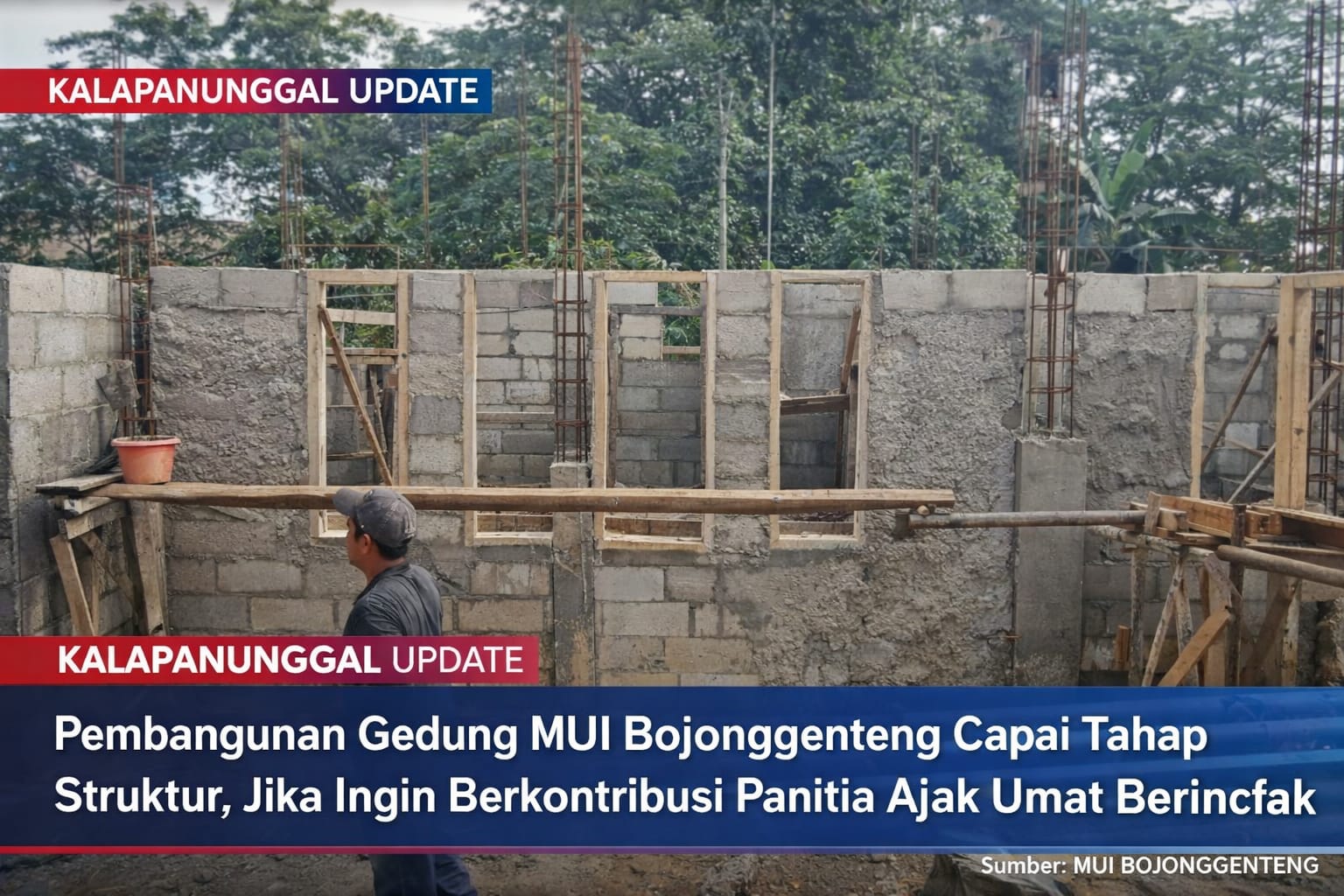 KALAPANUNGGALUPDATE.COM, MUI Bojonggenteng. – ( 1/2/2026 ). Pembangunan Gedung Kantor Majelis Ulama Indonesia (MUI) dan Sekretariat Lembaga Keagamaan Kecamatan Bojonggenteng terus menunjukkan progres positif. Hingga saat ini, proses pembangunan telah memasuki tahap pengerjaan struktur dinding dan penataan konstruksi utama, sebagaimana terlihat dari aktivitas para pekerja di lokasi pembangunan.