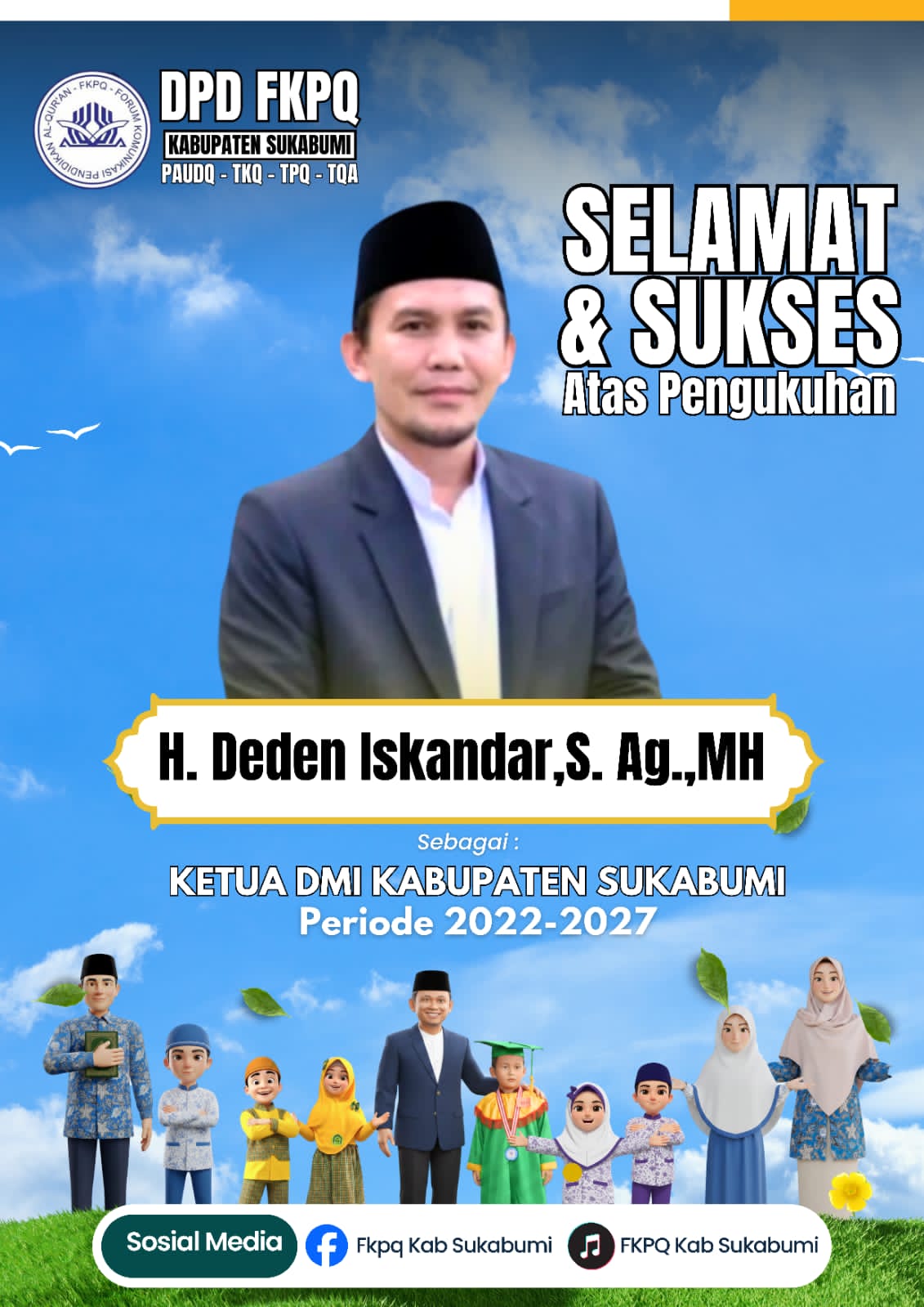 Ketua DMI Kabupaten Sukabumi yang resmi dikukuhkan adalah H. Deden Iskandar, S.Ag., MH. Dengan pengukuhan ini, diharapkan DMI Kabupaten Sukabumi semakin berperan aktif dalam memakmurkan masjid, sekaligus memperkuat fungsi masjid sebagai pusat ibadah, pendidikan, serta pembinaan umat di tengah masyarakat.