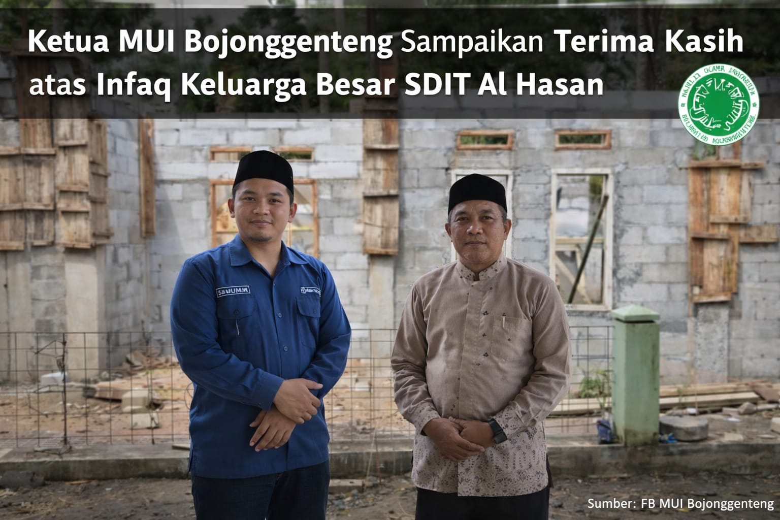 KALAPANUNGGALUPDATE.COM | MUI Kecamatan Bojonggenteng. – ( 4/2/2026 ). Ketua Majelis Ulama Indonesia (MUI) Kecamatan Bojonggenteng menyampaikan ucapan terima kasih dan apresiasi setinggi-tingginya kepada Keluarga Besar SDIT Al Hasan yang telah menginfaqkan sebagian hartanya untuk mendukung pembangunan Kantor MUI Kecamatan Bojonggenteng serta sarana keagamaan.