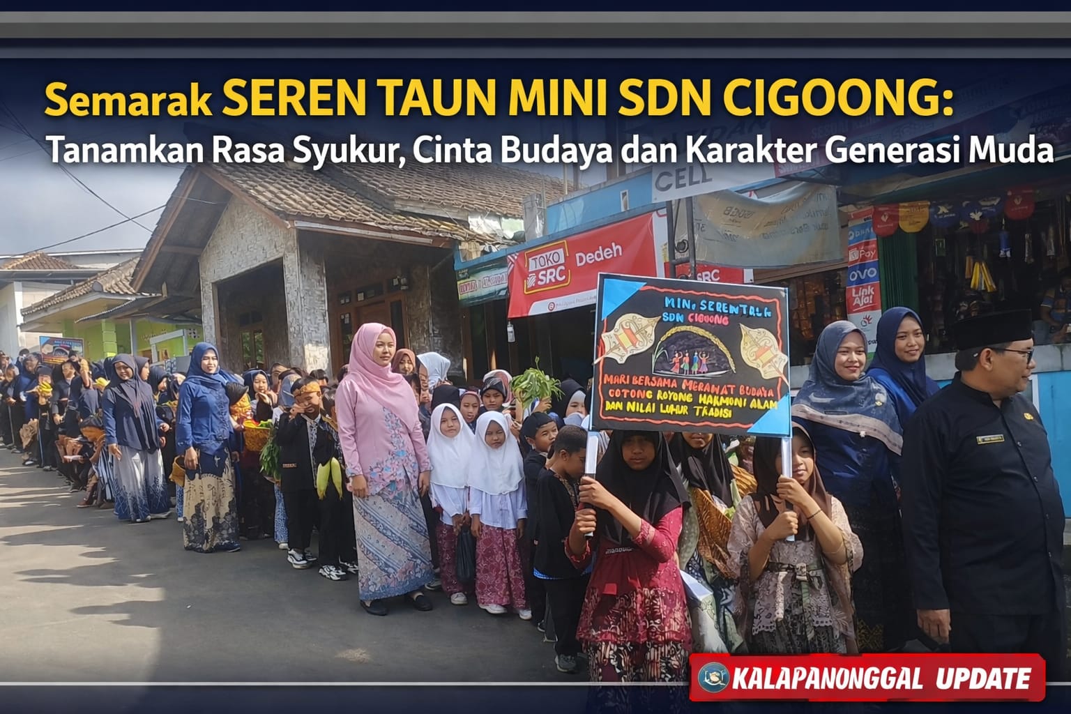KALAPANUNGGALUPDATE.COM | SDN CIGOONG, DESA PULOSARI, KALAPANUNGGAL. – ( 12/2/2026 ). Suasana berbeda tampak menyelimuti lingkungan SDN Cigoong Desa Pulosari. Ratusan siswa dengan balutan busana adat Sunda berbaris rapi mengikuti kegiatan Seren Taun Mini yang digelar meriah dan penuh makna. Kegiatan ini mengusung tema: “Dengan Seren Taun Kita Tanamkan Rasa Syukur, Cinta Budaya, Karakter Kemandirian, Tanggungjawab pada Generasi Muda.”