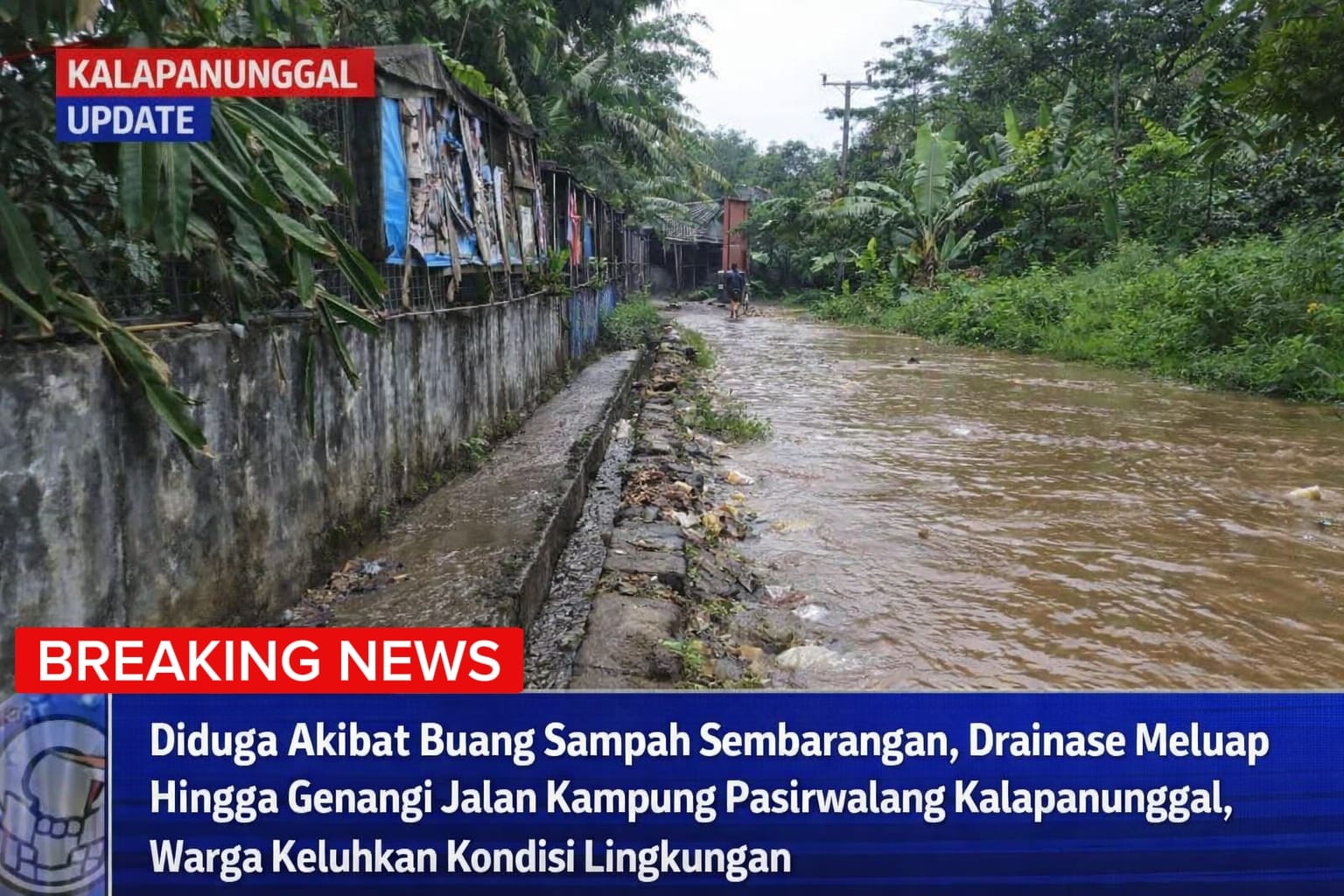 KALAPANUNGGALUPDATE.COM | Desa Walangsari Kecamatan Kalapanunggal, Sukabumi – ( 15/3/2026 ). Sebuah video yang memperlihatkan kondisi saluran drainase meluap hingga menggenangi jalan kampung di Kampung Pasirwalang RT 06/RW 03, Desa Walangsari, Kecamatan Kalapanunggal, Kabupaten Sukabumi, tengah viral di media sosial dan menjadi perhatian warga.