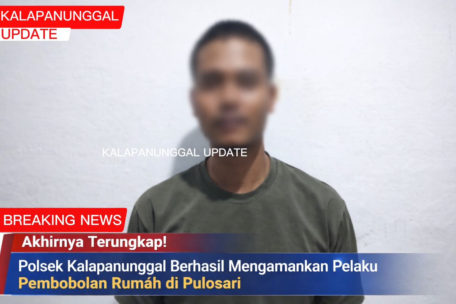 Penangkapan dilakukan pada Kamis, 19 Maret 2026 sekitar pukul 17.00 WIB, oleh Unit Reskrim Polsek Kalapanunggal bersama Tim Resmob Polda Jawa Barat. Pelaku diketahui berinisial RR alias Rifal Bin Empud (Alm.), warga setempat yang sehari-hari bekerja sebagai buruh harian lepas.