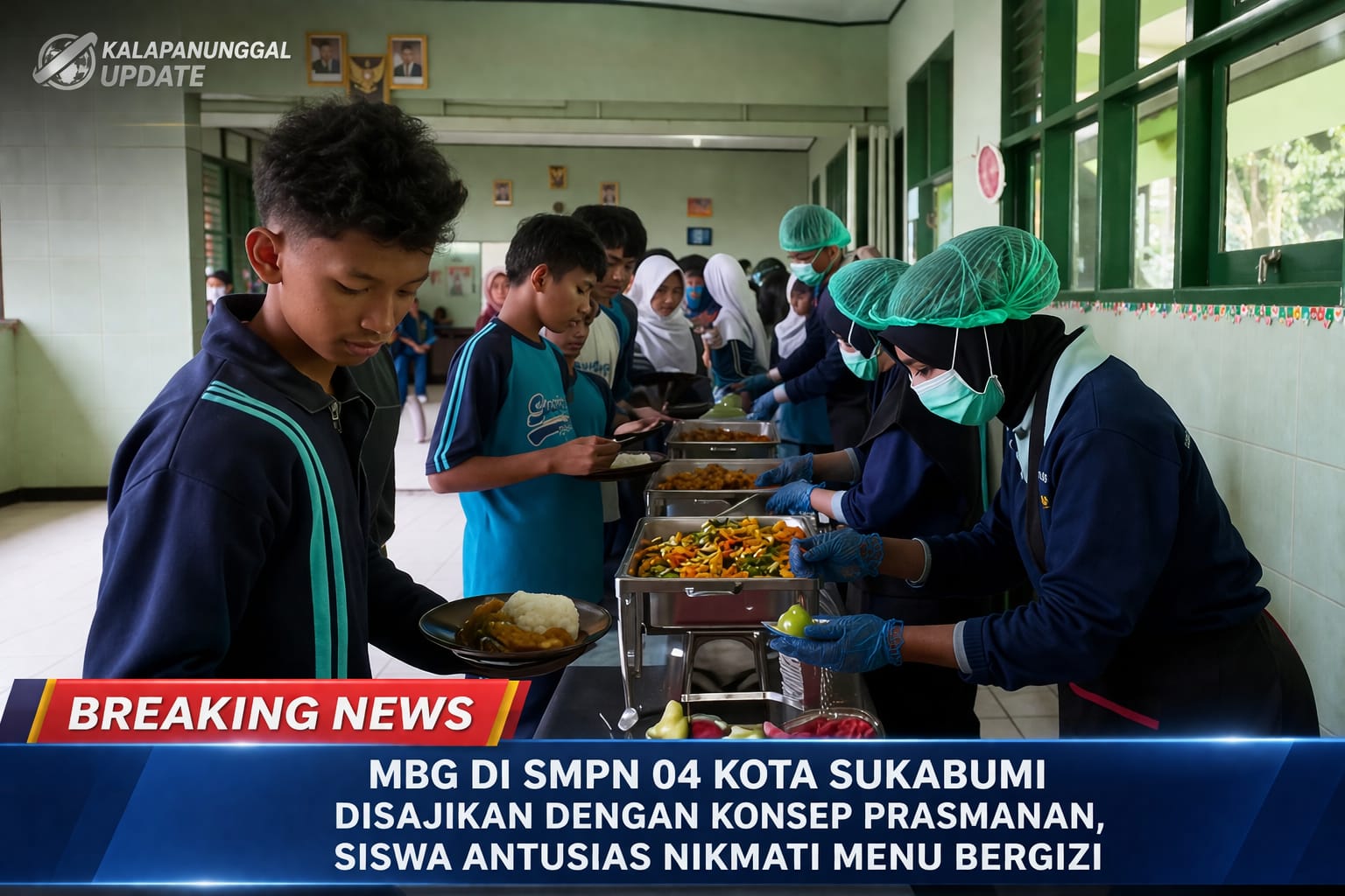 KALAPANUNGGALUPDATE.COM | MBG SMPN 04 KOTA SUKABUMI, – ( 30/3/2026 ). Suasana berbeda tampak di lingkungan SMPN 04 Kota Sukabumi saat para siswa mengikuti kegiatan Makan Bergizi Gratis (MBG) dengan konsep prasmanan. Kegiatan ini menjadi perhatian karena dinilai lebih tertib, efisien, dan memberi pengalaman baru bagi para pelajar dalam menikmati hidangan bergizi di sekolah.