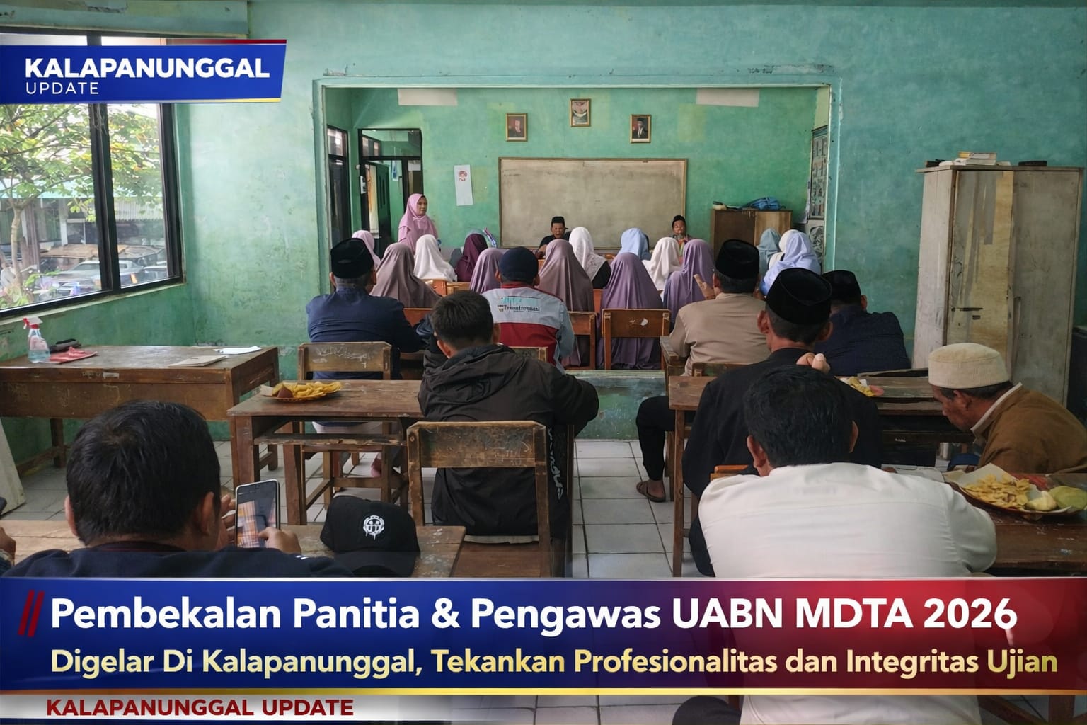 KALAPANUNGGALUPDATE.COM | Kecamatan Kalapanunggal – ( 31/3/2016 ). Suasana serius namun penuh semangat tampak dalam kegiatan pembekalan panitia dan pengawas Ujian Akhir Berstandar Nasional (UABN) Madrasah Diniyah Takmiliyah Awaliyah (MDTA) Tahun 2026 tingkat Kecamatan Kalapanunggal. Kegiatan ini dilaksanakan di Madrasah Diniyah Miftahul Falah, Manglad, dengan dihadiri para panitia serta pengawas dari berbagai wilayah.