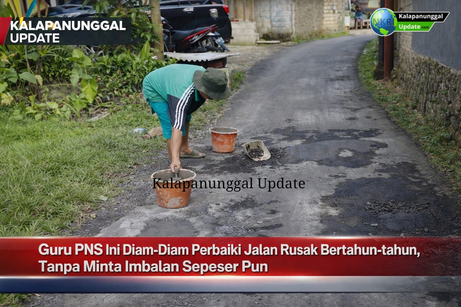 KALAPANUNGGALUPDATE.COM | Desa Pulosari Kecamatan Kalapanunggal Kabupaten Sukabumi, – ( 18/4/2026 ). Di tengah keluhan warga soal jalan rusak yang tak kunjung diperbaiki, sosok sederhana dari pelosok desa justru memilih bergerak tanpa banyak bicara. Dialah Bapak Agus, seorang guru PNS yang tinggal di Kampung Pasir Awi, Desa Pulosari, Kecamatan Kalapanunggal.