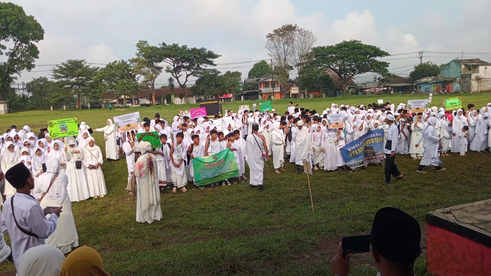 Kegiatan ini berlangsung meriah dan penuh khidmat. Para peserta yang didominasi santri tampak mengenakan pakaian serba putih layaknya jamaah haji, mengikuti rangkaian simulasi ibadah haji mulai dari niat, tawaf, hingga tahapan lainnya secara tertib dan penuh semangat.