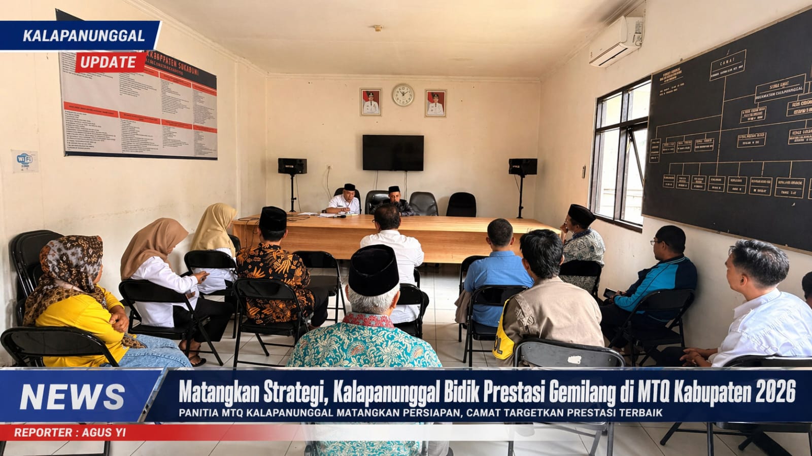 KALAPANUNGGALUPDATE.COM | Panitia MTQ Kalapanunggal, — ( 23/4/2026 ). Panitia Musabaqah Tilawatil Qur’an (MTQ) Kecamatan Kalapanunggal terus menunjukkan keseriusannya dalam mempersiapkan gelaran MTQ Tahun 2026. Hal tersebut terlihat dari rapat koordinasi yang berlangsung di Aula Kecamatan Kalapanunggal pada Rabu (22/04/2026), dengan dihadiri seluruh jajaran panitia dan unsur terkait.