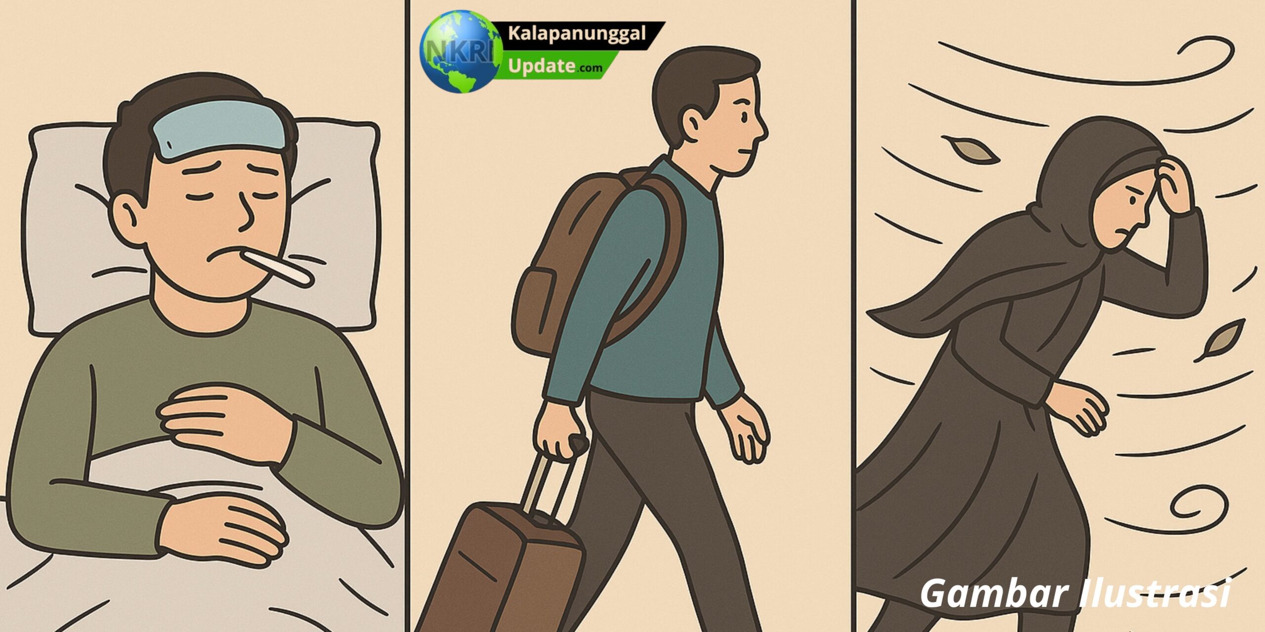 Hujan lebat atau cuaca buruk – Sehingga menyulitkan untuk berangkat.