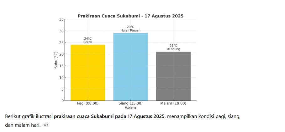 Ringkasan Prakiraan Cuaca Sukabumi, 17 Agustus 2025