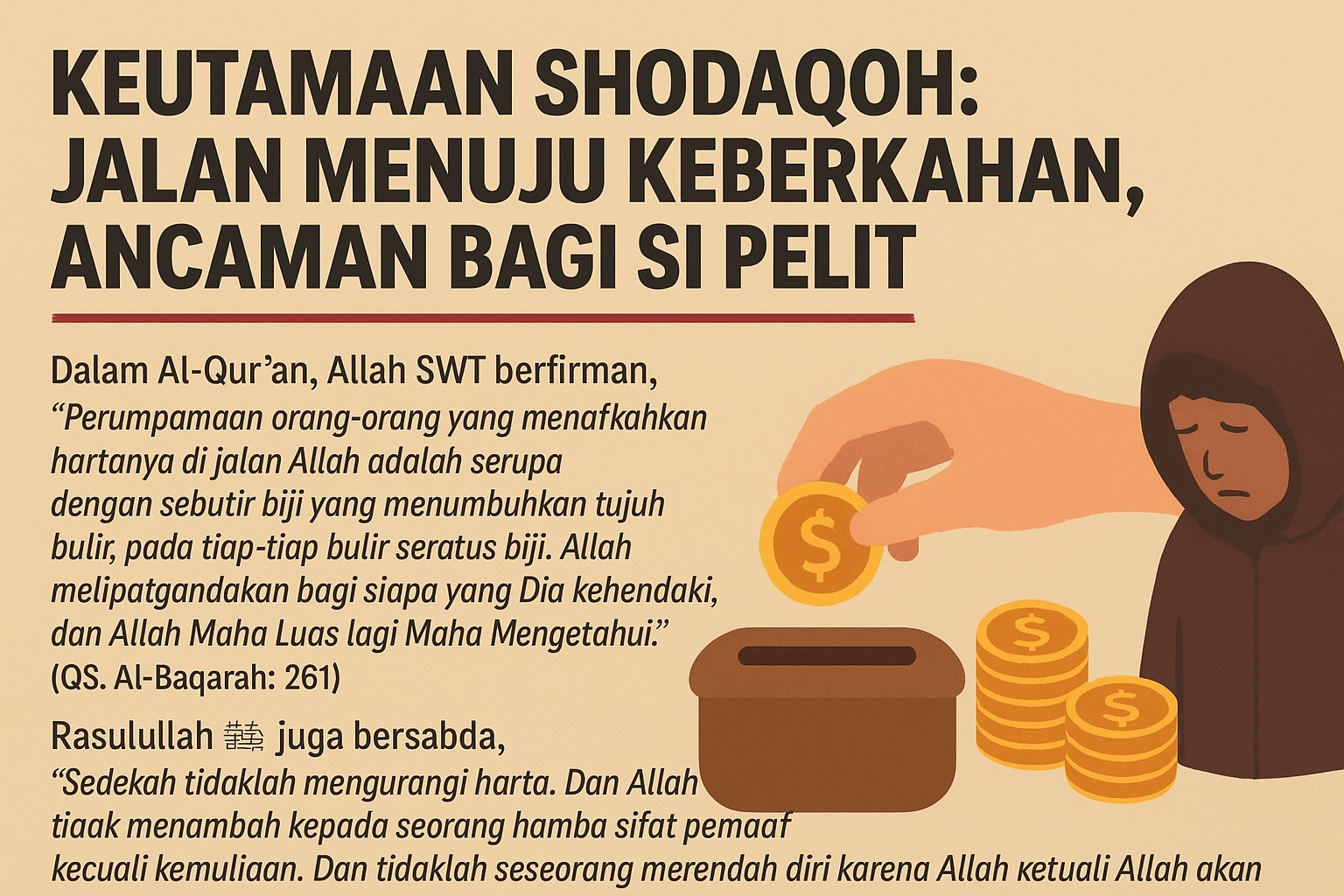 Dengan demikian, jelaslah bahwa shodaqoh adalah jalan menuju keberkahan, sementara sifat kikir hanya membawa kerugian di dunia dan akhirat. Mari kita tingkatkan kepedulian dengan bersedekah, sekecil apa pun, karena setiap kebaikan akan dibalas oleh Allah SWT dengan pahala yang berlipat ganda.