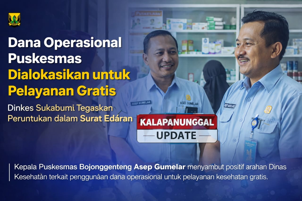 KALAPANUNGGALUPDATE.COM, PUSKESMAS BOJONGGENTENG, SUKABUMI. – ( 9/1/2026 ). Pemerintah Kabupaten Sukabumi melalui Dinas Kesehatan (Dinkes) resmi mengeluarkan Surat Edaran Nomor 800.1/537/Dinkes/2026 tertanggal 7 Januari 2026, yang mengatur penggunaan Dana Operasional Pelayanan Puskesmas yang bersumber dari pajak daerah.