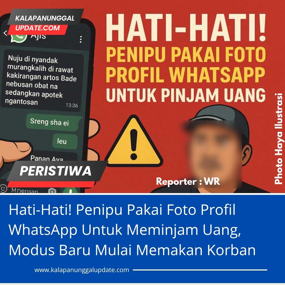 Kalapanunggalupdate.com, Desa Pulosari Kecamatan Kalapanunggal, – ( 19/11/2025 ). Sebuah modus penipuan baru kembali meresahkan masyarakat. Kali ini, para pelaku memanfaatkan foto profil WhatsApp dan identitas palsu untuk menghubungi korbannya dan meminta pinjaman uang dengan berbagai alasan mendesak.