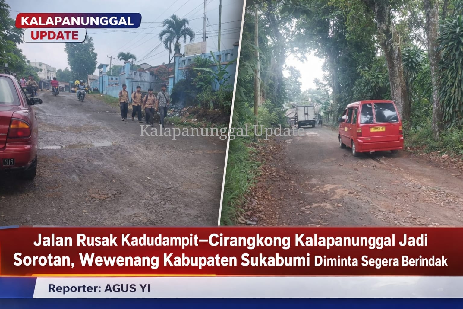KALAPANUNGGALUPDATE.COM | Kadudampit Kecamatan Kalapanunggal Kabupaten Sukabumi, – ( 15/4/2026 ). Kondisi ruas jalan Kadudampit hingga Cirangkong kian memprihatinkan dan menuai sorotan warga. Jalan berlubang, genangan air hujan, serta minimnya penerangan jalan menjadi persoalan serius yang dinilai membahayakan keselamatan pengguna jalan.