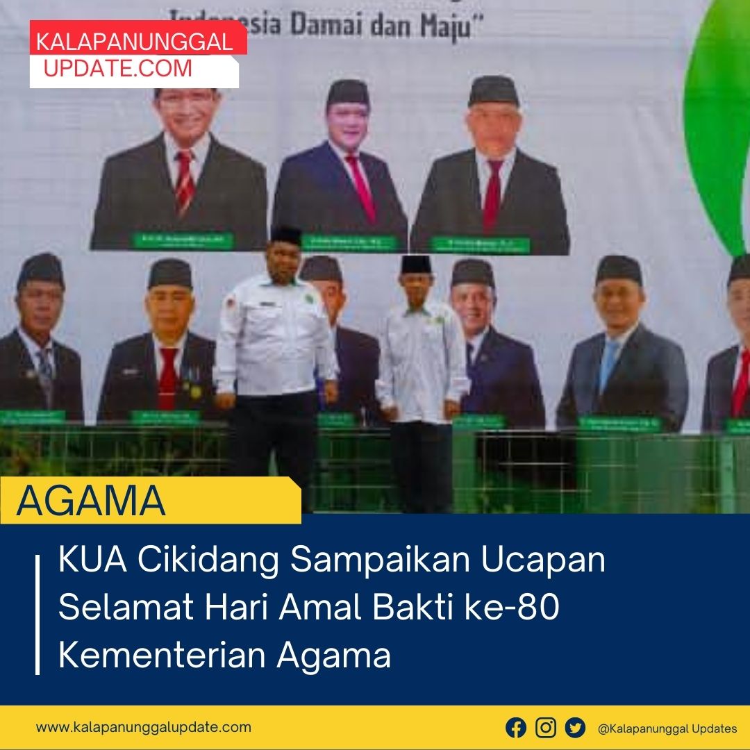 KALAPANUNGGALUPDATE.COM, Cikidang. – ( 3/1/2026 ). Dalam momentum peringatan Hari Amal Bakti (HAB) Kementerian Agama Republik Indonesia ke-80, Kantor Urusan Agama (KUA) Kecamatan Cikidang turut menyampaikan ucapan selamat dan apresiasi atas perjalanan panjang Kementerian Agama dalam melayani umat dan bangsa.