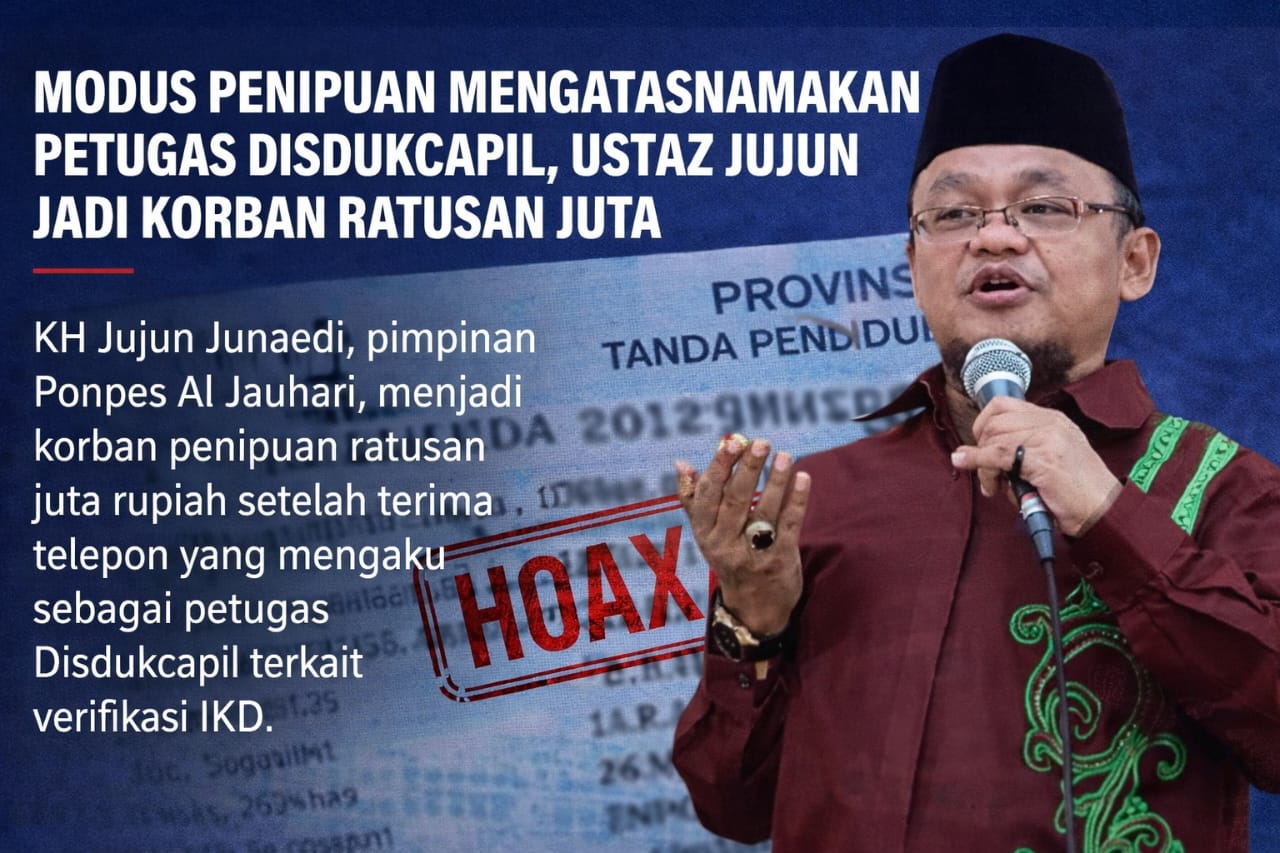 KALAPANUNGGALUPDATE.COM, Bandung Raya. – ( 5/1/2026 ). Modus penipuan dengan mengatasnamakan petugas Dinas Kependudukan dan Pencatatan Sipil (Disdukcapil) kembali memakan korban. Kali ini, korban diketahui merupakan ustaz kondang asal Garut, KH Jujun Junaedi, pimpinan Pondok Pesantren Al Jauhari.