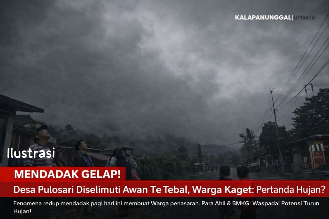 KALAPANUNGGALUPDATE.COM, Desa Pulosari. – ( 11/1/2026 ). Suasana pagi yang biasanya cerah dan menenangkan di sebagian wilayah Desa Pulosari berubah drastis, mendadak redup bahkan gelap, pada pagi hari ini Sabtu, 11 Januari 2026,. Langit yang semula terang perlahan tertutup awan tebal berwarna kelabu, membuat cahaya matahari nyaris tak menembus permukaan bumi.