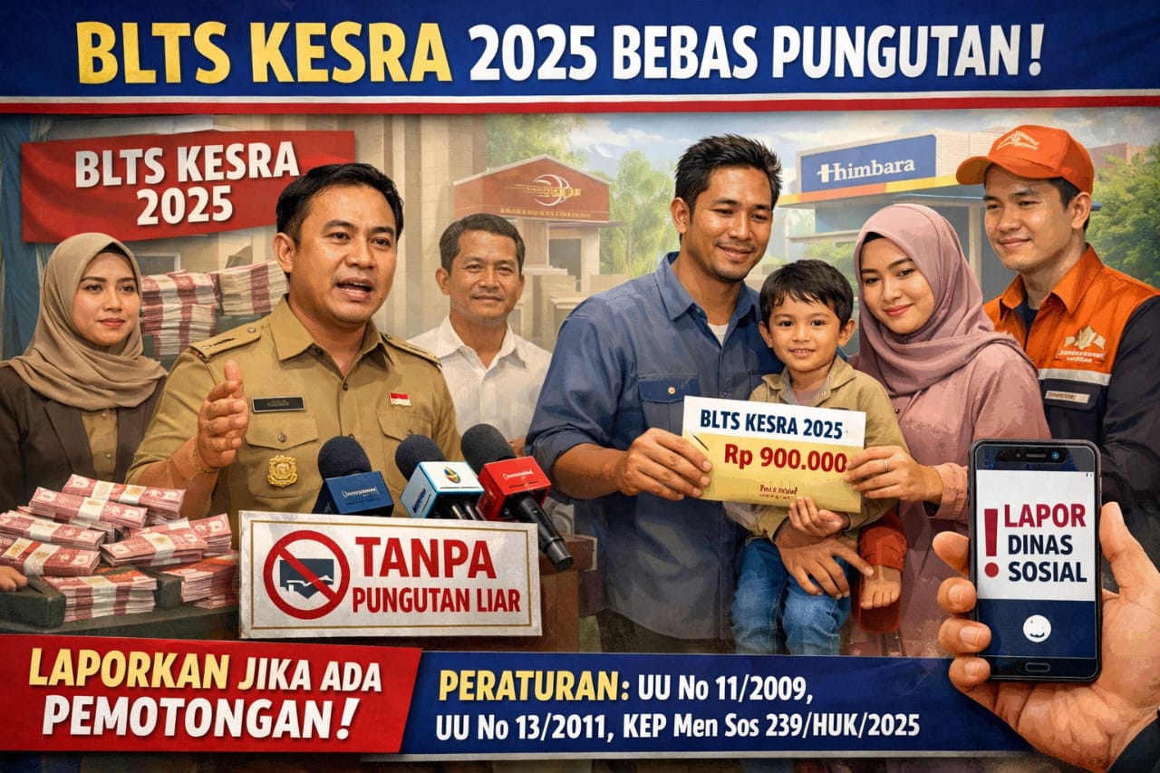 KALAPANUNGGALUPDATE.COM, Jakarta, 2 Januari 2026. — Pemerintah kembali menegaskan komitmennya dalam penyaluran Bantuan Langsung Tunai Sementara Kesejahteraan Rakyat (BLTS Kesra) 2025 kepada masyarakat luas sebagai bagian dari strategi perlindungan sosial untuk menghadapi tantangan ekonomi. Program ini ditegaskan tidak dipungut biaya sama sekali dan jika terdapat pungutan atau pemotongan oleh oknum, masyarakat diminta untuk segera melaporkan ke aparat berwenang.