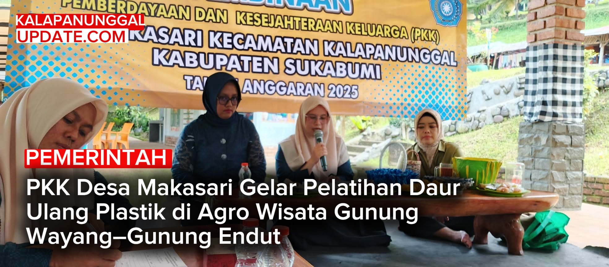 KALAPANUNGGALUODATE.COM, Desa Makasari, Kecamatan Kalapanunggal. – ( 31/12/2025 ). Upaya pemberdayaan perempuan sekaligus kepedulian terhadap lingkungan terus digencarkan. Tim Penggerak PKK Desa Makasari menggelar kegiatan edukatif berupa Pelatihan Daur Ulang Bahan Plastik Bekas menjadi Keranjang, yang berlangsung di kawasan Agro Wisata Gunung Wayang–Gunung Endut, Kecamatan Kalapanunggal, pada Selasa, 30 Desember 2025.