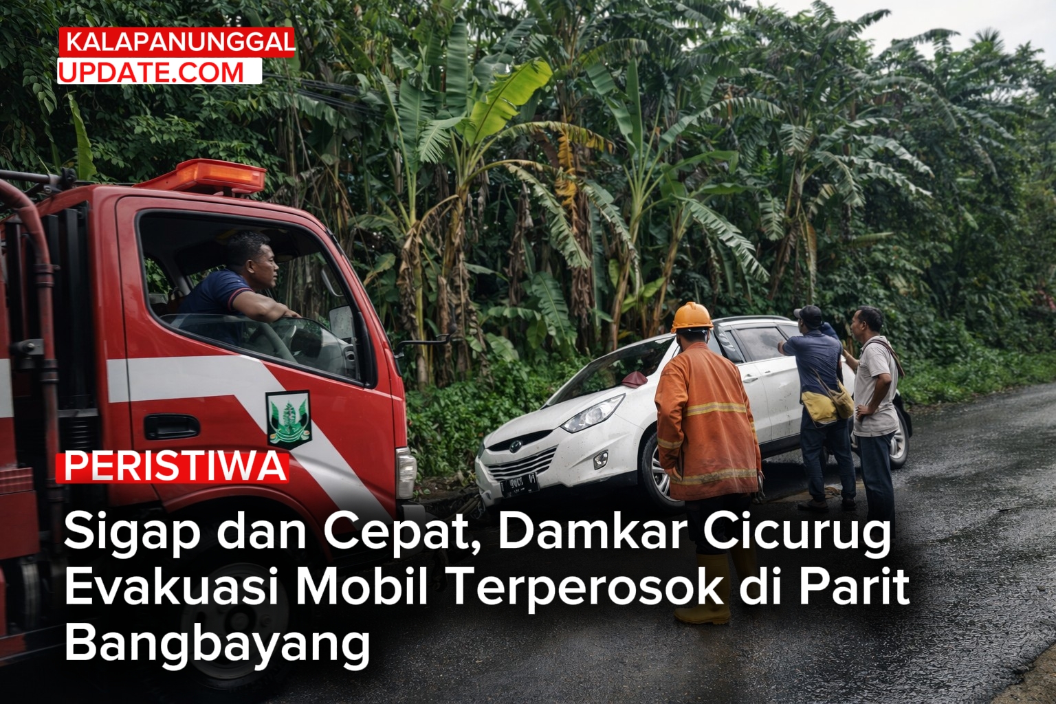 KALAPANUNGGALUPDATE.COM, DAMKAR CICURUG, Kabupaten Sukabumi. – ( 30/12/2025 ). Respons cepat kembali ditunjukkan oleh jajaran Dinas Pemadam Kebakaran dan Penyelamatan Kabupaten Sukabumi. Tim dari Posko Damkar 3 Cicurug berhasil menangani kejadian human rescue berupa mobil yang terperosok ke dalam parit di wilayah Kampung Bangbayang, Desa Bangbayang, Kecamatan Cicurug, pada Selasa (30/12/2025).