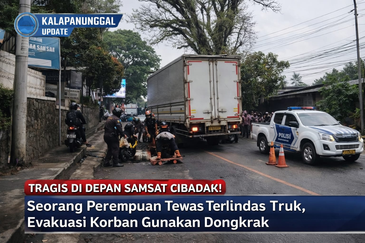 KALAPANUNGGALUPDATE.COM | KABUPATEN SUKABUMI — ( 28/3/2026 ). Peristiwa kecelakaan lalu lintas yang mengerikan terjadi di Jalan Raya Karang Tengah, tepat di depan Samsat Cibadak, Kecamatan Cibadak, Kabupaten Sukabumi, Sabtu (28/03/2026).