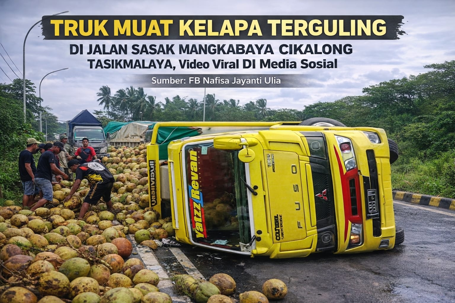 KALAPANUNGGALUPDATE.COM, Tasikmalaya. – ( 21/1/2026 ). Kecelakaan lalu lintas tunggal melibatkan kendaraan roda empat bermuatan buah kelapa terjadi di Jalan Sasak Mangkabaya, Kecamatan Cikalong, Kabupaten Tasikmalaya, Jawa Barat, Selasa (20/1/2026) sekitar menjelang sore.